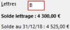 Le solde lettrage initial est de 4 300 euros : c'est ce montant que l'on retrouvera en haut du prochain relevé de compte sous l'intitulé « Ancien solde au... ».